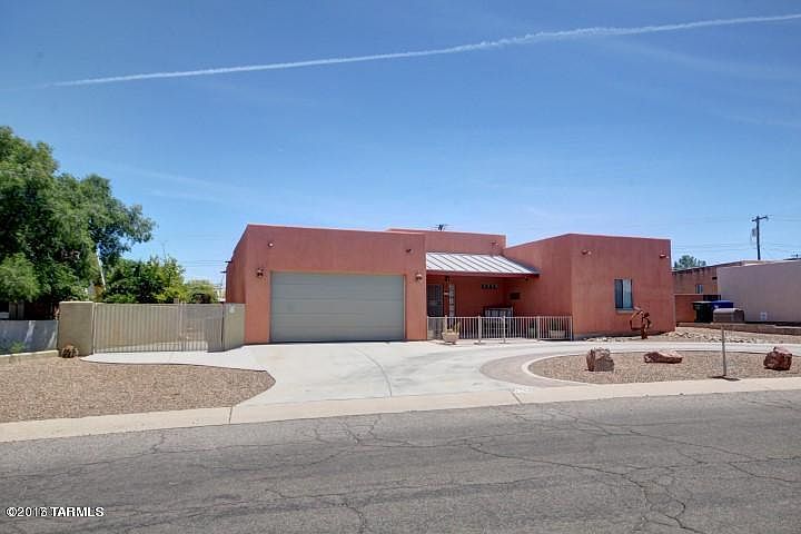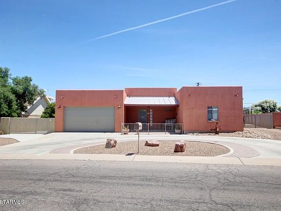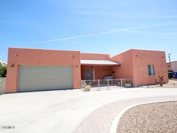 This custom built home was designed for energy efficiency with 10'' and 11'' walls by B and T Construction with 2' x 8' construction. Door openings are wheel chair accessible, transom windows allow for air flow while clerestory windows mitigate the heat. Ceiling fans move the air. Home is smart wired, with surround sound, and has been prepped for solar panels. Two storage sheds and an RV pad.Details include Mexican sinks, bronze fixtures, scored concrete floors and cherry cabinets. The stucco is tinted for easy maintenance. Bedrooms are large: 12.9' x 14'; 15'6'' x 15'3''. Roof has recently been recoated. Exterior landscaping includes brick pavers, metal fencing, dog run and storage areas. Near schools, shopping including Trader Joe's, restaurants.