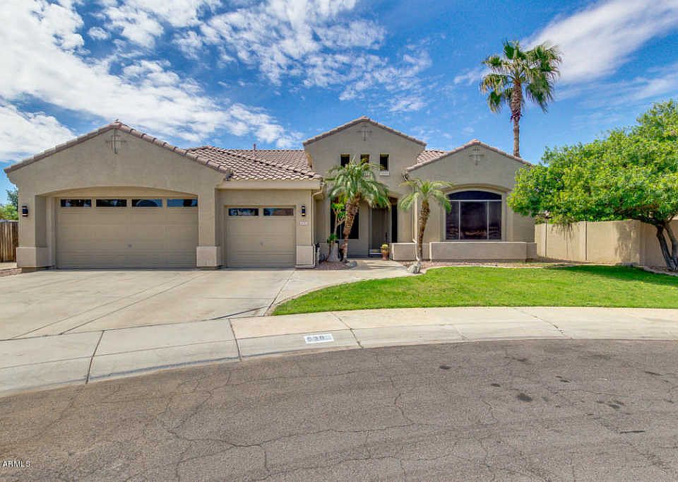 Fabulous single level, cul-de-sac lot home with 3 bed and 2.5 baths. Upon entry you will find a large den, perfect for a home office or study. Continue on to see the upgraded kitchen with SS appliances & island w/ raised breakfast bar. Great room includes vaulted ceiling, fireplace and built in media wall. The large master bedroom has separate tub & shower , dual sinks, oversized walk-in closet and private access to the outside. Backyard is an entertainers dream with brick pavers, fire features, covered patio and pool! Community includes walking / jogging trails, parks, etc.Minutes from shopping, restaurants and the A+ rated Chandler schools.