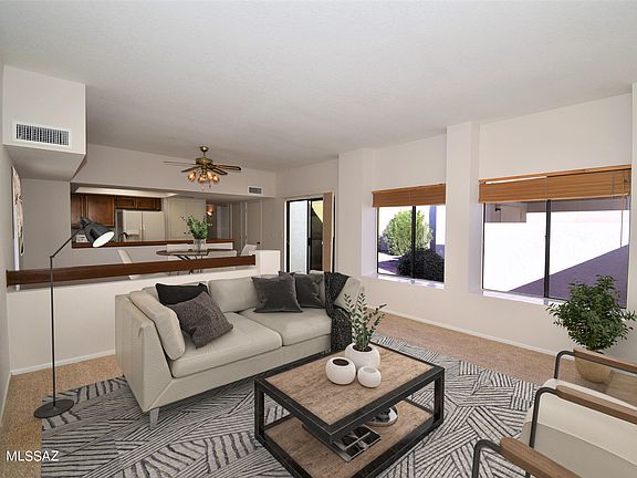 This SPOTLESS townhouse is located in highly desirable Belcorte on the East side. Super bright inside with skylights and FRESH NEW PAINT, plus newer carpet in the family room. Three full bedrooms and two bathrooms, open concept family room overlooking the enclosed patio. Spacious enclosed back yard features two large Saguaro cactus and colorful Bougainvillea . Tons of storage inside plus an enclosed outdoor equipment area. This wonderful neighborhood is just blocks from Sprouts Market, La Baguette Parisienne French bakery, Home Depot and more.