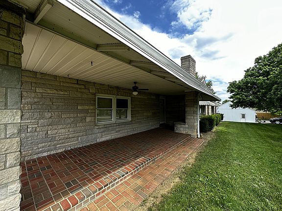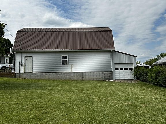Come take a look at this charming Bedford Stone home in a quaint area of Lawrenceburg . This home has the original hardwood floors and the roof was replaced in 2021. The main floor has a foyer, living room, dining, room, family room, and an eat in kitchen. Two bedrooms and a full bath is upstairs. The basement is very open and has a utility room, full bath, 2 rooms with closets used as bedrooms by the previous owner, and an unfinished storage area. This home has so much potential! A covered front porch and a back deck for visiting with friends and family. An extra large 28 by 40 detached garage is a must see for storage and a great place to have a workshop. It is equipped with 240 amps and has stairs to a loft above the garage. There is also another garage behind the main garage used for lawn equipment. Driveway is shared.
