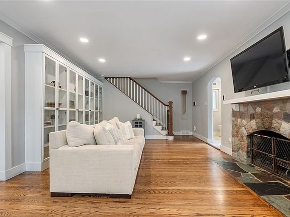 This charming 3-bedroom brick home in desirable Mt. Lebanon is nestled on a corner lot mere blocks from the Shops at Beverly. Recently renovated, it exudes modern elegance with beautifully updated baths and hardwood floors throughout. The cozy living room features a gas fireplace and custom built-in shelves. The kitchen is a culinary dream, adorned with subway tile backsplash, quartz counters, stainless steel appliances, and illuminated display cabinets. The master bedroom offers his and her closets and a spa-like bath. The second bedroom features rough-ins for a potential third bath. A rare feature for a home of this age is the washer and dryer are on the 2nd floor. The third floor can be finished as a fourth bedroom. Outside, professionally landscaped grounds enhance the property's curb appeal. Positioned in one of the city's most sought-after neighborhoods, this home offers an unparalleled blend of modern comfort and timeless charm.