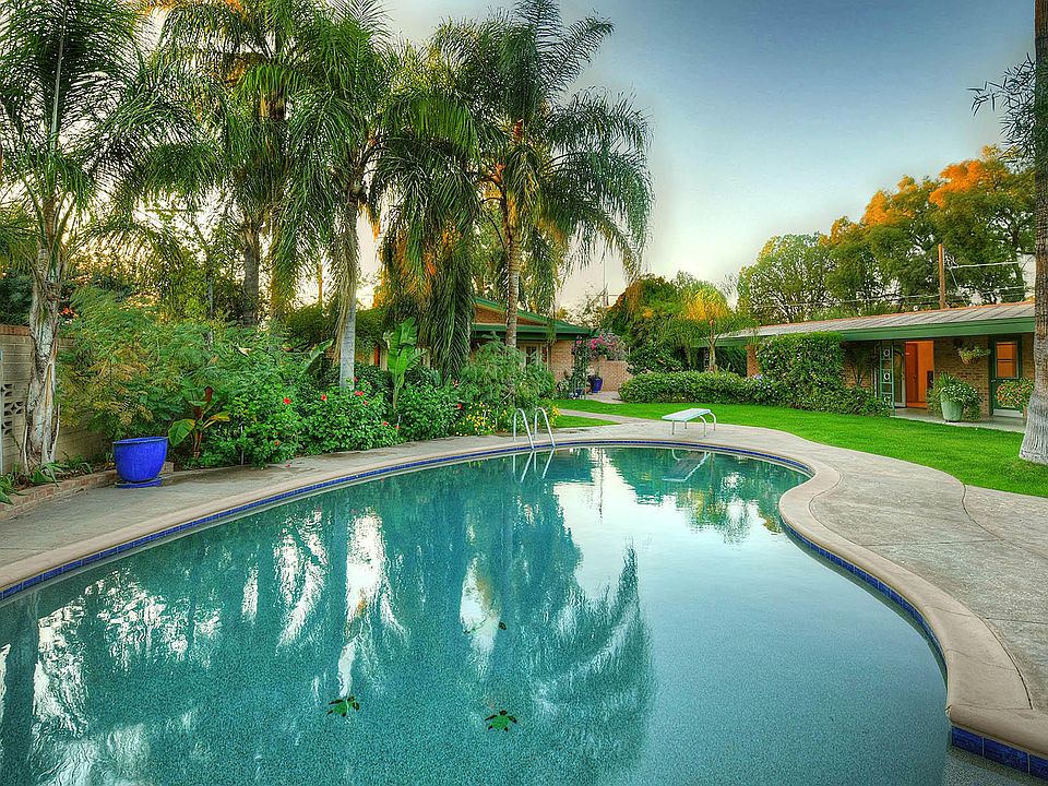 Wonderful 1960's Modern by notable Architect Arthur Brown the University Manor of Sam Hughes on nearly 1/2 acre!The main house is 1993 sq ft & enjoys a large livingrm w/built in bookcases, FP. Large diningrm w/ Bay window is open to the kitchen. Kitchen remodeled w/flr to ceiling storage, Sub Zero Fridge,SS appli, 5 burner stove, center island w/ breakfst bar, 2 wine fridges, Pella Window & exterior drs thruout. Mstr & 2nd bedrm has hardwd flrs & French drs . Mstr w/en-suite renovated ba 2018, w/soaking tub & heated stone flrs & counters. 2nd bathrm w/walk in glass steam shower, heated stone flrs & tile + a 1007 sq ft Gst hse w/a versatile flr plan that could be used as a 3 bedrm 2 ba or 2 bedrm + office/living space. Pebble Tech Pool! 1 car garage! Workshop! Off St parking!