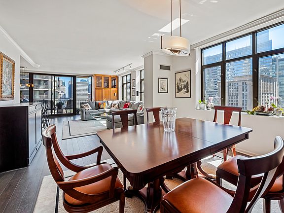 Every stunning detail was carefully selected and is of premium quality. This one-of-a-kind home, created by the original owners in collaboration with the developer to combine units, offers a spacious and thoughtful floor plan that you won't find anywhere else in the building. The renovated kitchen opens to a large, light-filled living and dining area-ideal for entertaining. With southeast exposure and two private balconies, the city views stretch from sunrise to sparkling night skies. The huge primary suite feels like its own retreat, complete with two oversized walk-in closets. An expansive entertaining space, two additional storage units, and three parking spots in the attached garage set this home apart. The building features 24-hour door staff, a fitness center, and a party room. Outside your door, you're just steps to Michigan Avenue shopping, CTA trains, and an endless array of River North's best restaurants and nightlife.