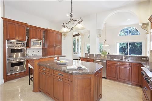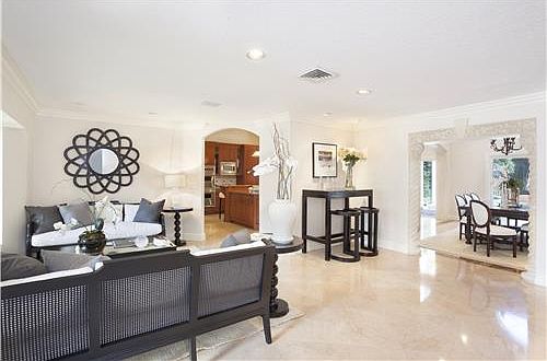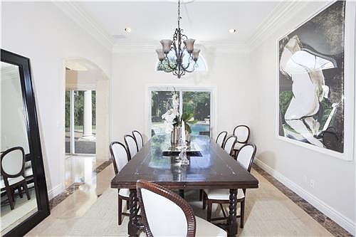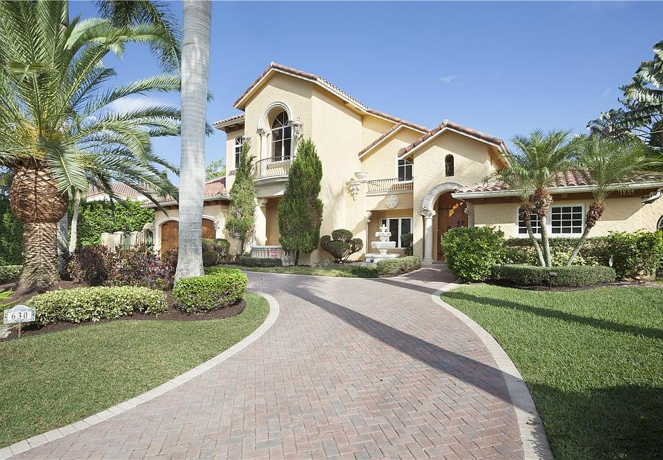 Location Tunision Palms, Boca Raton, Florida. In the heart of Boca Raton, this tranquil neighborhood is minutes from the beach and Mizner Park's world-class shopping and dining. Property On the neighborhood's largest single lot, this tastefully renovated Mediterranean Revival estate was inspired by celebrated society architect Addison Mizner, whose signature style gave 1920's Boca Raton its defining and lasting character. The ornate columns, arches, balustrades, Spanish tile roof, and Old World fountain come together in the quintessence of gracious living. Lush tropical trees seclude the outdoor entertainment space featuring a dining loggia by the heated pool/spa. Residence Extended and renovated in 2003. This richly detailed inviting 4-bedroom, 3.5-bathrooms residence totals 5,359± square feet including newly polished Saturnia marble floors, impact-glass windows and exterior doors, Generac generator, and 2-bay garage. Entered through baronial double doors, the foyer flows into the bay-windowed living room overlooking the garden fountain. Rope-work columns frame the dramatic entrance to the formal dining room where French doors open to the lushly landscaped pool patio. Also opening by the pool, the breakfast room adjoins the gourmet kitchen offering handsome cherry-finish cabinetry, granite counters, and high-end Thermador and Sub-Zero appliances. The adjacent family room features a majestic cast stone fireplace, built-in media center, full cabana bath, and French doors to the loggia. Custom built-ins line the library/office/bedroom. Another wing hosts 3 bedrooms with 2 baths. The entire second floor is devoted to the grand window-walled master suite, opening to a view-filled terrace with stairs to the pool patio. Featuring a sumptuous marble bath with jetted tub and steam shower, the suite also offers 2 walk-in closets, a gym, and storage room.