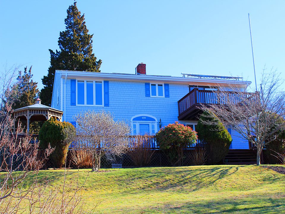Spacious 4 bedroom, 2 1/2 bath, colonial perched high on a lovely corner lot with beautiful flowering trees, shrubs and perennials. This large Colonial overlooks the water with beautiful sunset views and access to the water which also includes a mooring. Enjoy the views from the wrap around deck and charming gazebo. Newer sunroom addition is a delightful room with walls of windows and access to the deck. A spacious living room features a beautiful stone fireplace and french doors. Included on the first floor are two bonus rooms one which would be a great office and the other exercise, storage or craft room. The home also features hardwood floors throughout. On the second floor there are four large bedrooms including the master with master bath and a guest bath. The master bedroom has a private balcony offering spectacular waterviews! This is a great opportunity to have access to the water in wonderful neighborhood at an affordable price!