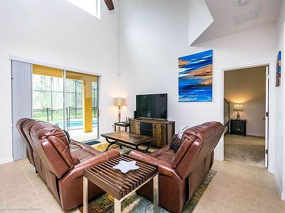 Available NOW, welcome to this Full Furnishing 6 bed/ 4.5 baths plus private pool villa. The large fully equipped kitchen features granite counter tops and stainless-steel appliances. Enjoy meals together in the dining area, breakfast bar, or even outdoor patio space. This wonderful property offers one king-size bedroom with own bathroom on the first floor, three bedroom with a queen bed and other 2 bedrooms offering 2 single beds each. Every bedroom features its own flat-screen TV. The outdoor space is perfect for having fun in your own private swimming pool! Gated community with access to the beautiful clubhouse, resort-style pool, fitness center, gathering room, picnic area, children's playground, basketball and volleyball courts. Only a 15-minute drive to Disney. Rent includes basic cable/ internet, and trash valet. Tenant pays utilities and pool maintenance. A year lease term (Tenant pay utilities service and pool maintenance). Rent include Furnitures, cable/internet service and trash pickup and lawn maintenance. Small pets are okay (two maxim) with $300 NO refundable pet deposit and monthly $30 pet fee. NO Smoking, Rent includes: basic cable/ internet, and trash. Tenant pay utilities and pool maintenance . Tenant credit score 630 or above.