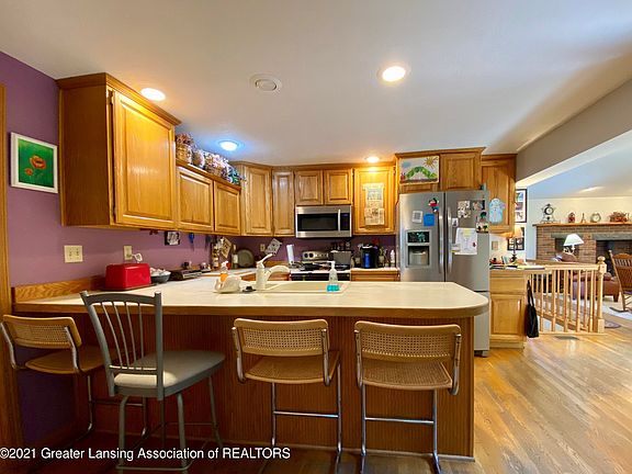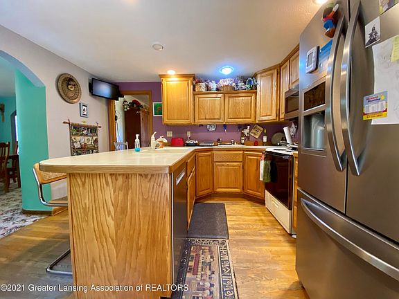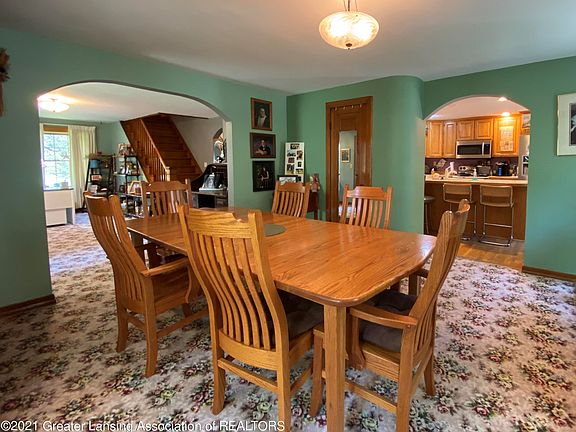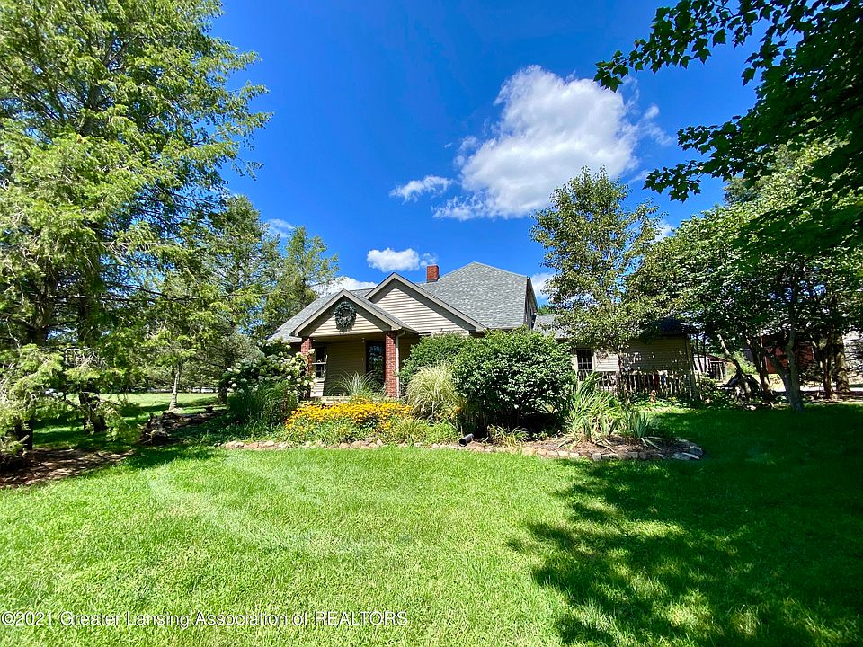Haslett-country living 3 miles from Meridian Mall. Over 2000 sq ft of living space with large great room, formal dining, living room, office, and 4 bedrooms. Property has 4 out buildings; 2 barns, a milk house, and corn crib and a attached 3 car garage.