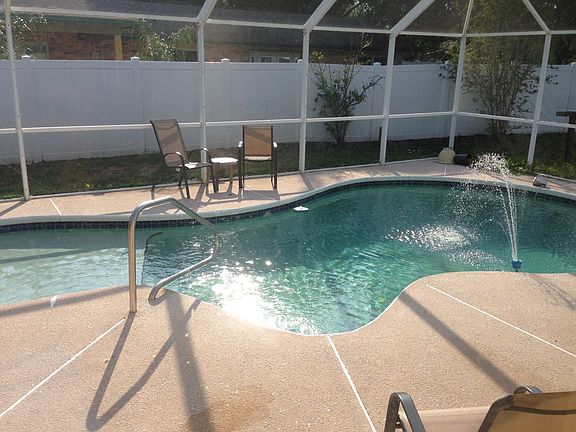 We are currently listing our home for sale by owner as we prepare for a move out of state. We are open to any buyers agents and will happily pay any buyers agent fees, or work with individual buyers. We are currently updating and completing projects around the home and yard. The sale will include many additional extras such as newer ('16) high end washer/dryer, lawn mower, pool maintenance equipment, NEST thermostat and NEST integrated smoke/carbon dioxide alarms, electronic door locks, patio table/chairs. Well build concrete block/stucco home features a large master bedroom and bath with walk-in closet and 2 person jetted tub, as well as, a stand alone shower, dual sinks and makeup desk. Large open kitchen with upgraded stainless steel appliances, breakfast bar and island. The kitchen area has lots of storage within the island cabinets, two pantry closets. The kitchen is very open and allows easy flow between with the enclosed patio and 2nd family room off of kitchen. Entry living room with cathedral ceilings and a large separate dining area. With plenty of large windows and sliding doors provide an open home that allows easy access and viewing of the pool/patio, this home is spacious, bright and airy! Step directly from the living living room, family room or master bedroom into the roomy, screened pool area for hours of bug free and shaded relaxation under the outdoor fans. Lots of recent updates including new paint, LED lighting, updated fixtures, New high efficiency variable speed pool pump, new high capacity pool filter.