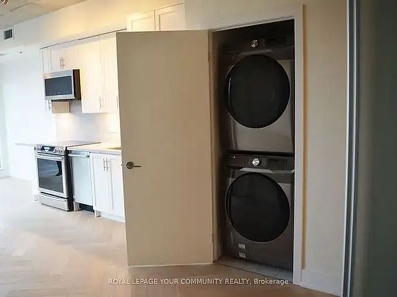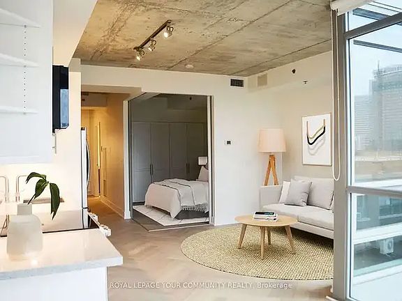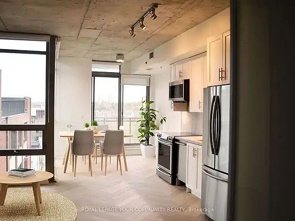 Welcome to your newly renovated home in South Riverdale! A stylish, sun-filled space with 10-ftconcrete ceilings, custom herringbone hardwood floors and solid maple cabinets you wont find anywhere else in the building. The kitchen boasts granite counters and all-new appliances including an induction stove, silent Bosch dishwasher and deep sink. The one-of-a-kind den has built-in storage & desk that's perfect for working from home no additional furniture required. Steps away from Blackbird Bakery and TTC this home is perfect for peaceful nights with the convenience of city living at your doorstep!