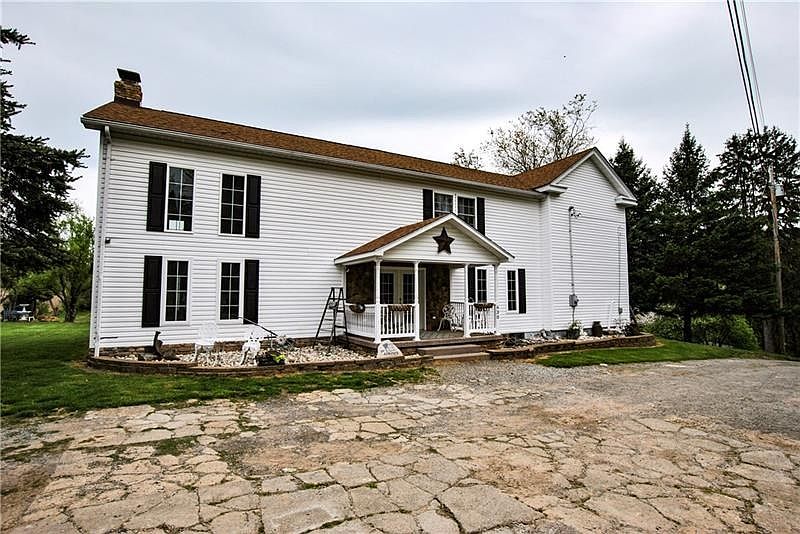 Beautiful updated farmhouse on 4.6 acres in South Butler School District located right next to the Rails to Trails! Walk into the 2 story, vaulted family room with a floor to ceiling wood burning stone fireplace! Updated large kitchen with stainless steel appliances, concrete counter-tops and eat-in area. Heated floors in the family room and main floor bath. Upstairs features 2 bedrooms with a Jack and Jill half bath in between and the spacious master. The master suite has vaulted ceilings, a master bath with jet tub and shower, and a walk-in closet! Outside features a deck and pool for entertaining and loads of privacy! The detached garage has 2 garage doors but is much bigger than a normal two car garage with horse stalls now used for storage.
