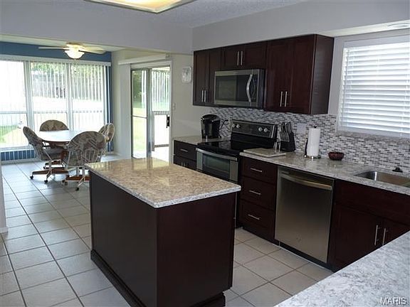 Updated kitchen (2015) in this spacious, open home located near Hwy. 70 & Page Extension! Kitchen features custom cabinetry with soft close drawers & pulls, quartz countertop, stainless appliances, center island & tile backsplash. Wide plank wood laminate flooring can be found in the entry, formal living & dining rooms, family room & UL hallway. Kitchen, breakfast room, baths & main floor laundry all have ceramic floors. Family room with bay window & gas fireplace. Step out of breakfast room to freshly stained covered deck. Main level laundry is HUGE with shelving. Large master bedroom with double doors & luxury master bath with twin bowl vanity & separate tub & shower. Sellers are offering HMS home protection plan. Home is located in City of St. Peters with numerous walking trails, parks, RecPlex & many other great services! Agent Remarks: Please exclude basement shelves, workbench &