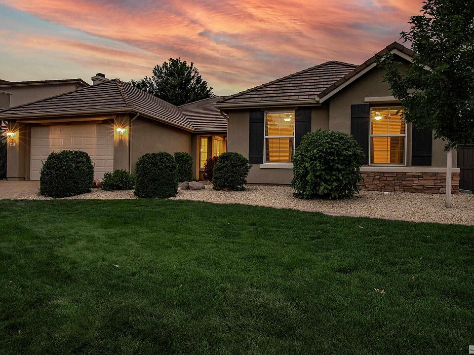 Check out this beautiful and well maintained single story home in Curti Ranch offers three bedrooms, one office, two and a half bathrooms, 3 car garage with 2516 square feet situated on. 0.24 acres. The kitchen has been updated with new silestone counters to accompany the stainless steel appliances including double ovens., Perfect for holiday parties and family gatherings!!! Recent exterior paint, newer carpet, kitchen counters, 5 new lighted ceiling fans are a few of the improvements to this home.The backyard is private with low maintenance landscaping with several quaking aspen and a large concrete patio perfect for outdoor entertaining! . There are custom window screen shades on the south side to reduce heat on the Southern exposure in the summer.. Removable to increase sunlight in the winter. The tandem side of the garage can accommodate longer vehicles. Enjoy the abundance of walking paths throughout the development where there are miles of trails. If you are planning to work from home, this could be your Northern Nevada Tax solution. And low monthly HOA fees of only $115 per quarter. Easy access to Lake Tahoe, skiing, biking, hiking, golf, ice skating, Summit Mall shopping, restaurants, movie theaters, schools (Brown, Herz, Galena) and a short drive to the Reno Tahoe International Airport & Carson City. Also close to the Southeast connector - Veteran’s Parkway!