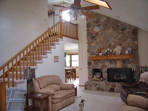 Move in immediately!! This home has been updated completely. Everything in the home is less than five years old!! Plenty of yard for any activity. Beautiful stone fireplace completes the living room. The daylight basement is completely finished for additional living space. Updates within the past five years include: roof, siding, windows, flooring, appliances, central vacuum system, HVAC, well, landscaping, and so much more. The outbuiling has several finished rooms and room for up to four cars. Call for your private showing today!