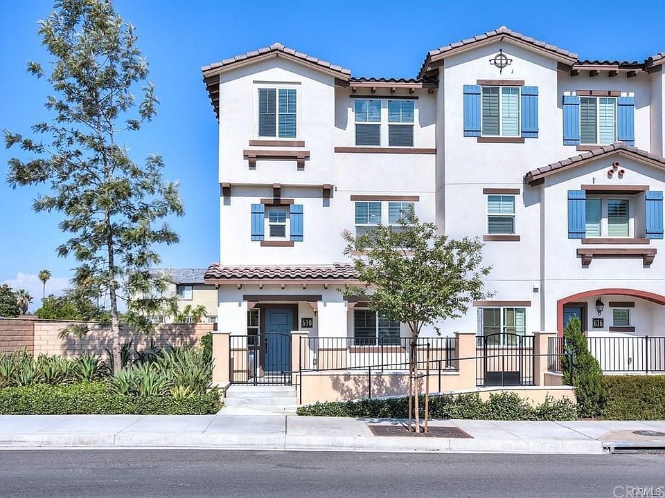 This beautifully upgraded townhome is one of Citrus Park Gallery's most desirable Plan 1 floorplan, newer 2013 built by Beazer Homes which features 4 bedrooms, 3 1/2 baths with 1,895 sq. feet of sumptuous living space and two car direct access garage. Main Level private bedroom and bathroom can be guest, in-law or nanny quarters. Master Bedroom has two walk-in closets and dual vanity. Bedrooms have mirrored closet doors. Enjoy this END UNIT and Relax on the private spacious balcony and BBQ with easy access to the large family room and kitchen boasting granite counters and stainless steel appliances. Lovely front courtyard to the right of entry leads to this Model Home Presentation unit. This home is just minutes away from Fullerton's best restaurants, shopping and close to freeways. Security System. Association play yard and BBQ common area. NO Mello Roos! Live this lifestyle dream!