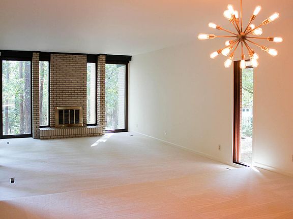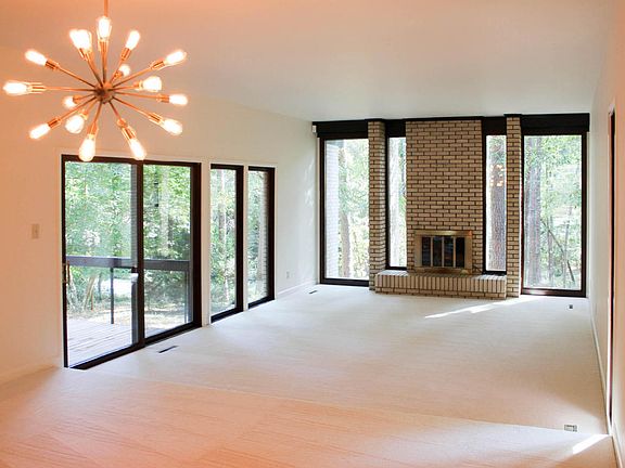 A mixture of old and new in this charming mid century contemporary home. Kitchen features new LG stainless steel refrigerator and dishwasher with vintage Frigidaire Deluxe wall oven and cooktop in excellent working condition. Trendy retro lighting accents the large great room with a floor to ceiling brick fireplace and new plush carpet throughout. Laundry room was renovated in summer of 2016. Large windows offer an excellent view of the property's large private lot with a mixture of mature trees. A portion of the 1 acre lot is fenced. Southern portion of the lot backs up to an unused golf green. Ample storage in large carport with a small workshop.