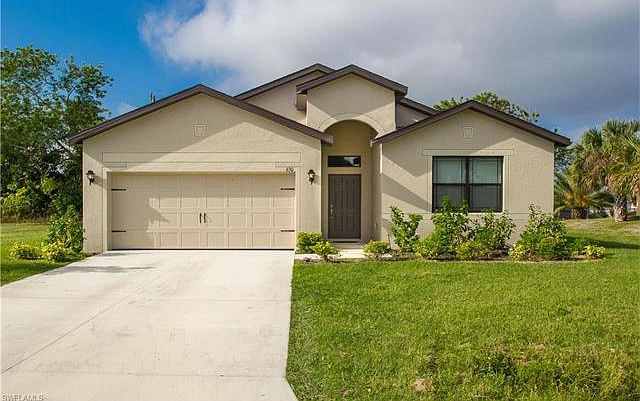 This is a Short Sale subject to existing lender's approval which could result in delays. JUST BUILT IN 2015! This 3 Bedroom, 2 Bath, 2-Car Garage home has a wonderful Great Room layout- LGI Builders Captiva Model. The Open Concept Design of the home gives it a cozy feel, yet the over 1600sf of living space & Split Bedroom Floor Plan gives the home enough space for the entire family. This home features tile & carpet flooring, Granite kitchen countertops, energy efficient appliances, and custom wood cabinets w/ brush nickel hardware. Long Foyer with tile and archway to main living area is impressive. The Guest Wing and Laundry Room/Garage access is off of the Foyer. The Master Bedroom offers a HUGE walk-in closet and a Master Bath w/ a Soaking Tub & Shower. The cement floored lanai is under truss and is perfect for grilling out, plus there is enough room for a pool. This home is conveniently located in SW Cape Coral and is near lots of shopping, dining & schools. It is also close to Pine Island Road, which is perfect for accessing to I-75 or heading into Fort Myers.