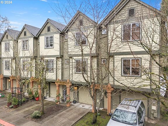 Location, location, location! This gorgeous, light-and-bright townhouse is centrally located within the tech corridor, sits directly across from Nike World Campus, and is totally move-in ready! The home has been tastefully updated throughout with new Granite counters, modern light fixtures, newer flooring, remodeled bathrooms, and special touches to every space! The staircase at the entry leads up to an open and spacious living room with a gas fireplace and a slider to the balcony. The main level features a half-bath, as well as a spacious kitchen with stainless steel appliances, Granite countertops, an eat-bar, an oversized island, and a dining nook. Head upstairs to find a spacious primary with a walk-in closet and remodeled ensuite bath, as well as the secondary bedroom with double closets and another ensuite bath. The two-car tandem oversized garage offers lots of extra storage space. Near Pioneer Park, Tualatin Hills Rec Center, and VillaSport Athletic Club and Spa. Centrally located with easy access to major highways with plenty of shopping, restaurants, and trails nearby! Low HOAs!
