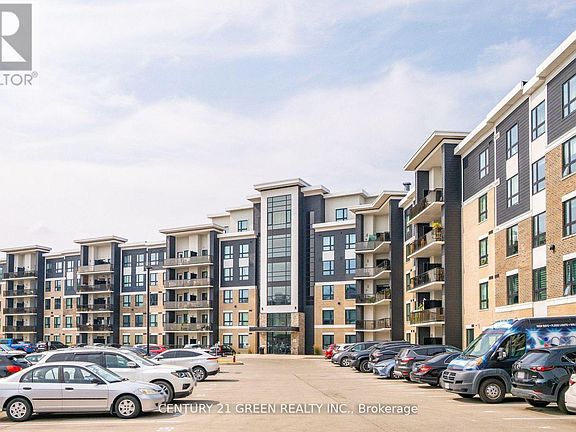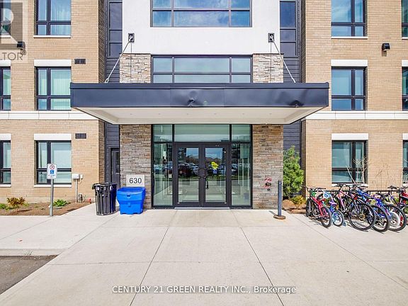 Welcome to this beautifully maintained two-bedroom, one-bathroom suite located on the fourth floor of the highly sought-after Origins low-rise community in Milton. This spacious 818 sq. ft. unit offers open-concept living with soaring 9-ft ceilings, combining modern style with everyday comfort. The contemporary eat-in kitchen features brand new quartz countertops, new stainless steel appliances, a large island, and ample cabinetry, flowing seamlessly into a bright living and dining area with walk-out access to a private balcony perfect for relaxing or entertaining. Both bedrooms are generously sized with excellent closet space, and the stylish four-piece bathroom includes double sinks with quartz counters. Additional features include in-suite laundry, a surface parking spot, and a large storage locker for added convenience. Ideally situated across from Irma Coulson Public School and close to parks, trails, shopping, and transit, this home is just minutes to Highway 401, the Milton GO Station, restaurants, Milton Hospital, and more. Residents enjoy exceptional amenities, including a fitness room, party room, rooftop terrace, and ample visitor parking. (id:41440)