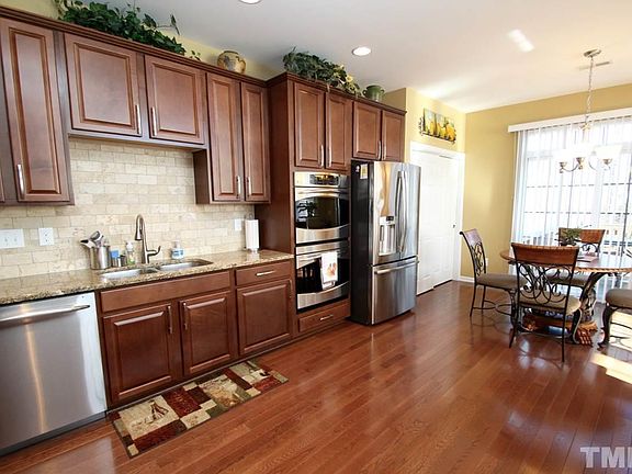 LOW-MAINTENANCE Desirable Townhome community in CARY! Private Backyrd w/ enhanced landscaping, DECK, Flagstone Patio, & Gas Stub! END-UNIT FINISHED WALK-OUT BASEMENT w/full bath. 3287 SQFT w/3 bdrms, 3.5 baths, 2-car garage, Oversized REC. RM, HomeOFFICE. High-end kitchen w/gas cooktop, granite, & SS appliances. STORAGE GALORE - Custom closets & Addtl. Garage storage. Security System, UV protection to all windows. POOL, PLAYGROUND, & CLUBHOUSE. Close to RTP, Airport, I-540, Shopping, Trails. MUST SEE
