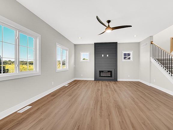 Nestled in the desirable Easton Park community, this fantastic main-floor master suite home is a rare find! Currently under construction and complete February 2024!The charming exterior welcomes you in to the spacious living room area where a fireplace serves as the focal point. The kitchen boasts an abundance of soft-close cabinetry, convenient island, and dinette space. Vaulted ceilings in the main floor flex room make it a perfect space for an office or formal dining. The luxurious master suite offers a tray ceiling, walk in closet, private bath with dual vanities and custom tile shower with built in bench! Upstairs you'll enjoy an additional full bath and 2 bedrooms, both with vaulted ceilings. The full unfinished basement gives you plenty of room to grow! Smart upgrades such as zoned HVAC, tankless water heater, finished garage, soundproofing,12x24 tile work, full appliance package, and more are all standard features here! Schedule your showing today! *Photos are representative.
