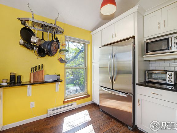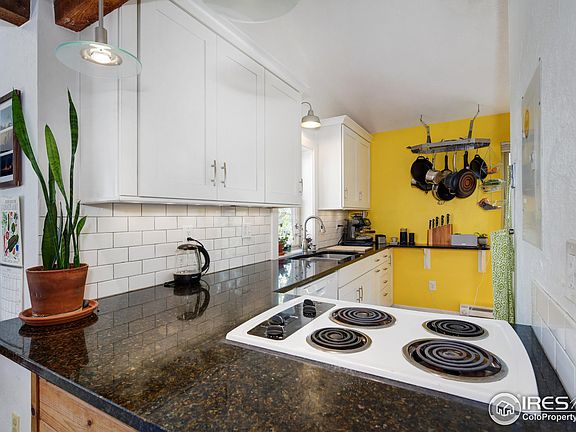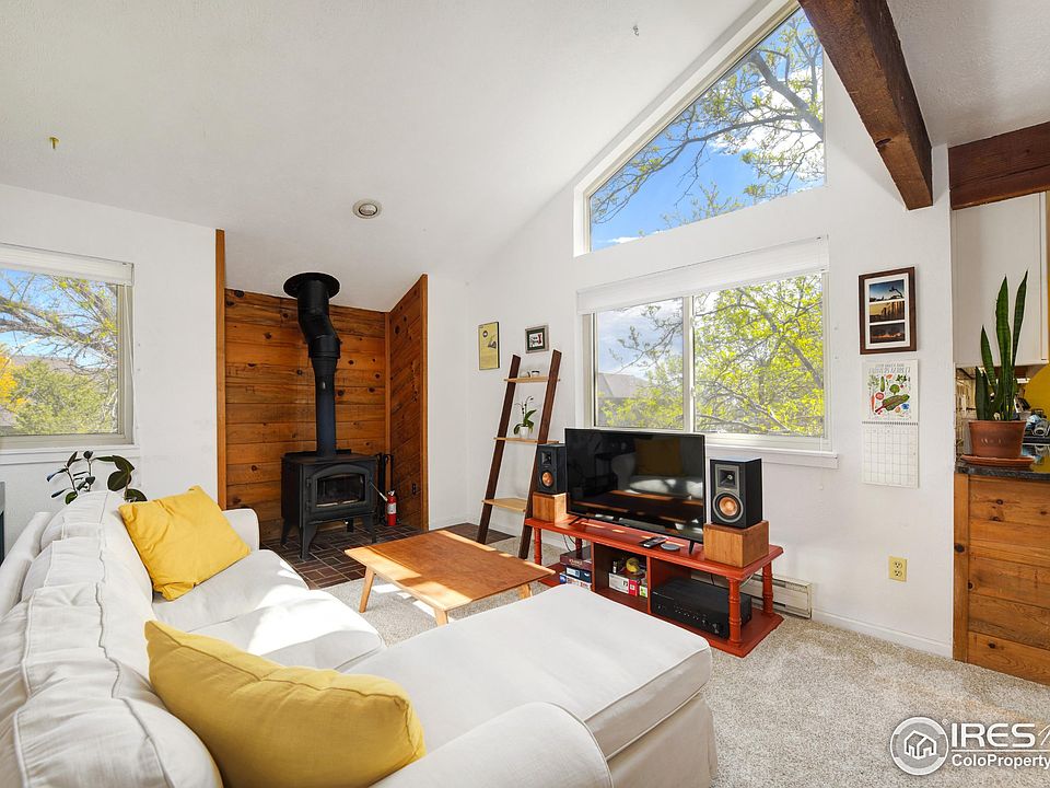 Welcome to your charming 2 bed, 1 bath townhome nestled in South Boulder. This cozy 2nd floor unit boasts a range of modern updates, ensuring comfort and style. Upon entry, you're greeted by the open layout w/ vaulted ceilings and a bright, airy atmosphere. The kitchen is updated w/ granite counters and sleek subway tile backsplash perfect for both cooking and entertaining complemented by engineered wood flooring for warmth and durability. Enjoy casual meals at the convenient bar seating area, ideal for quick bites or casual conversations. Vaulted ceilings with exposed beams enhance the spaciousness of the living area. Stay cozy during colder months w/ the wood stove. Retreat to the comfort of two well-appointed bedrooms, including a primary bedroom with a walk-in closet for ample storage and the in-unit clothes washer/dryer. New carpeting adds a touch of luxury underfoot. Step outside onto the deck and private flagstone patio area, new stairs, and railings, perfect for enjoying your morning coffee, hosting outdoor gatherings or having space for a pet. The large detached garage provides convenient parking, w/ additional storage space for all the gear. Pets welcome. This unit offers privacy and tranquility, w/ easy access to open space trails and quick access to Denver, DIA and I-70. Walk or Bike to all the Boulder has to offer!