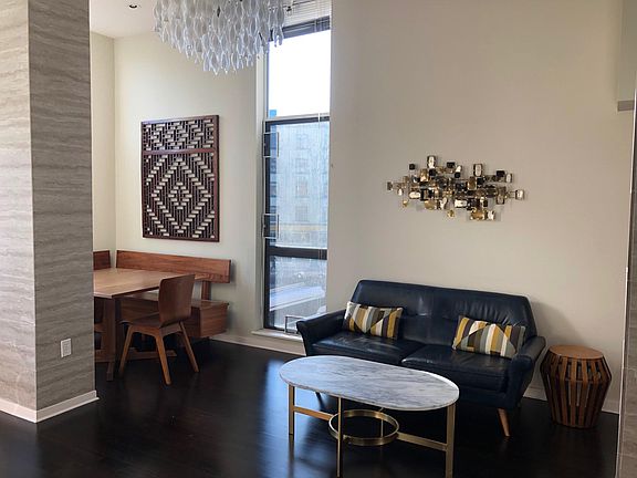 Enjoy a spacious 1,030 sq. ft. two (2) bedroom, 2 full bathrooms condo in a modern building in the heart of Uptown. Secured 8 story building with parking garage. This unit is on the 4th floor, same level as garage entrance. No stairs/elevator needed to get from parking spot to unit. Unit is one level, no stairs within unit. Parking for 1 car included. EverCharge electric charging station next to dedicated parking spot. Building has interior common courtyard, lounge room in lobby and a gym. 3 blocks from 19th BART station. Other features include: 1. Hardwood floors in hallway, kitchen and great room. 2. Soaring 11 foot ceilings. One of only three 2 BR units with no stairs and high ceilings in the building. 3. Floor to ceiling windows. 4. Detachable window screens. 5. Recessed lighting and designer chandeliers in great room and 2nd bedroom/office. Ceiling fan in master bedroom. 6. Huge kitchen with island and granite countertops. 7. Stainless steel appliances. Refrigerator, built-in microwave and washer/dryer unit have all been replaced in the last few years. Washer and dryer in unit. 8. Travertine tiles in bathroom. 9. Large walk-in closet in master bedroom with California Closets built-in organizers. 10. California king size bed fits easily in master bedroom. 11. Built-in dresser and bookshelf in master bedroom. 12. Built-in linen cabinet in 2nd bathroom. 13. Exclusive 8.5w x 3.5h x 2.5 d storage cabinet above parking spot. 14. No additional charge for parking. 15. No additional charge for pets. 16. Webpass high speed internet included. 17. Water, gas and trash included. Tenant responsible for PG&E electricity bill. Approximately $50-85/month, depending on electricity usage. 6 month to 1 year lease. Longer term considered. Open House, Sunday, August 15th 1-5 pm. Available for occupancy starting August 16, 2021. Security deposit of $3,200. Other showings by appointment only.