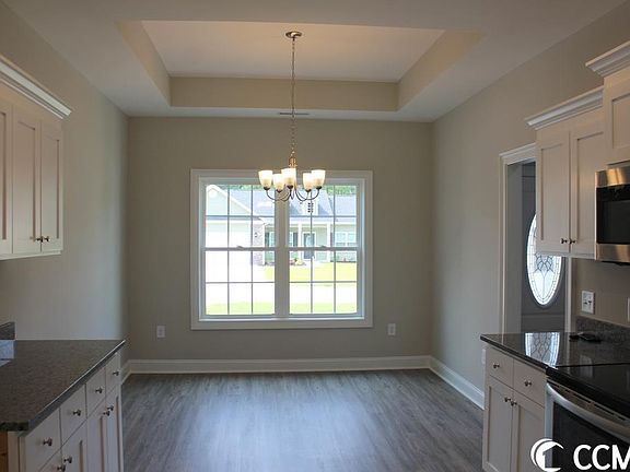 Beautiful and amazing curb appeal on our 3 bedroom and 2 full bath home calles the Hemlock Alt, all on one level. Floor plan has open living areas, split bedrooms, front porch, rear screened porch, and a 22'x10' patio. Living area has vaulted ceiling, ceiling fan with light, spacioius dining area, large kitchen with white shaker solid wood custom cabinets with crown molding and knobs, stainless steel appliances, a breakfast counter, granite counter tops, and a pantry closet. Master bedroom has a tray ceiling, ceiling fan with light, master bath has a walk-in shower, raised height double sink vanity, and linen closet. Upgraded waterproof luxury vinyl plank flooring in the living areas, and carpet in all the bedrooms. Additinal 14'8x10' concrete added to extend the rear patio. Washer and dryer connections. Upgraded interior trim includes 3 1/4" casings and 5 1/4" baseboards. Low E glass windows, energy efficient homes. Spacious, finished, and painted 2-car garage with automatic door opener, pull-down stairs to attic storage above. Irrigation system, gutters, sodded and landscaped yard. Quick and easy access to Myrtle Beach. Video is for illustrative purposes only and may be of similar home built elsewhere. Square footage is approximate and not guaranteed. Buyer is responsible for verification.