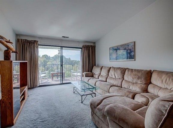 Third floor condo with gorgeous city view from its delightful balcony. Garage elevator provides no step to unit. Living room with 2-sided wbfp leads to balcony. Kitchen has corian and stainless steel appliances. Has a tall island bar and extra large cabinets with double undermounts. Bar stools and couch to remain. Desk and entertainment center stay if buyer desires. Cathedral ceiling, w to w.
