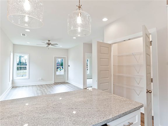 - Ceiling Fan(s), Eat-in Kitchen, Primary Downstairs, Living/Dining Room, Pantry