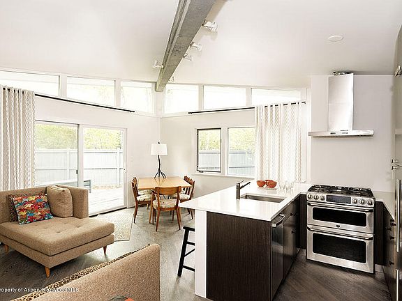 This West End two bedroom, two bath half-duplex has been tastefully remodeled with attractive contemporary finishes throughout. The open concept living space is full of natural light; an updated kitchen that is fully-equipped with top-of-the-line appliances, Quartz countertops and breakfast bar. This property works well for a two couples or a small family with children. The master suite has a luxurious bathroom, two closets and a king size bed. The guest bedroom has a queen bed with additional twin bunk and private bathroom. The living space is highlighted by vaulted ceilings which provide a spacious feel and flows effortlessly into the wonderful yard. Conveniently located near the Aspen Music Tent, the Aspen Institute and just minutes to downtown Aspen and the Silver Queen Gondola.