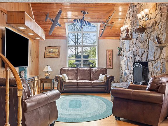 Welcome buyers to this incredibly charming, cozy home. The exterior of the home features flag stone and wood siding with an amazing wrap around porch for family and friends to gather. Property has a one car garage (in the back of the property) with an automatic door. Seller has recently stained the exterior wood siding. The interior of the home features a beautiful flag stone fireplace, tongue and groove ceilings in vaulted living room and kitchen. Kitchen has granite counter tops and freshly painted cabinetry with new hardware. Hardwood and ceramic tile are throughout the home. Seller has painted, added new vanities, fixtures, baseboards, and trim work throughout the home. HVAC and water heater are 1-2 years old. See Addition Remarks for more info. Master bedroom has a beautiful walk-in tile shower and french doors that lead outside to the wrap around porch. Upstairs bedroom has unique build-in shelves with dresser and desk. Bedroom leads out to a catwalk that over looks the beautiful, vaulted, living room and stone fire place. At the end of the catwalk is an adorable covered balcony that over looks the yard. The walk-out Basement has been finished out with hardwood floors with an additional stone fireplace, full bath, roomy closet and a laundry room. Seller is currently using it for the kiddos bedroom/bonus room. This home has so much to offer you must come see!!!