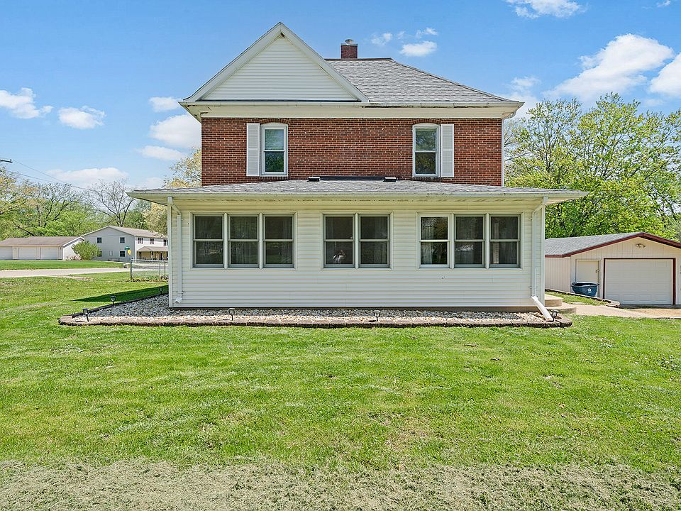 Classic red brick home - large corner lot features fenced back yard - with spacious rooms, main floor laundry and bath, enclosed back porch and finished enclosed front porch , family room has decorative fireplace, 3 bedrooms upstairs with an open area off the full bathroom. roof 2020, Furnace and c/air 2018, bathroom 2021