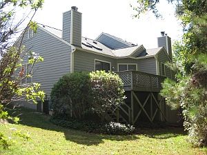 Beautiful Bungalow end-unit townhome. Enjoy this bright and sunny ranch home with vaulted ceilings and fans in both the living room and master bedroom. Relax on large back deck with a wooded view. Small side deck off kitchen great for grilling. Large storage area under home with concrete floor workspace. Walk to public transportation. Located in the Woodcroft Community with miles of walking trails and just minutes from I-40 and Southpoint Mall. Good investment property. Kenmore stainless steel appliances (dishwasher/range/microhood) included. Kenmore stainless steel refrigerator and Kenmore white XL washer/dryer negotiable. This property is currently tenanted.