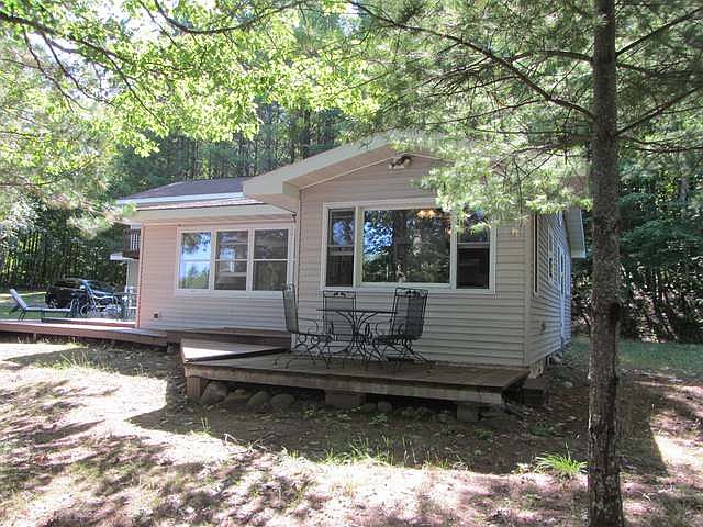 Privacy, Privacy, Privacy , At current price the property includes 325' of frontage and 1.36 acres. Additional Acreage has an offer. Survey and Taxes TBD. The cottage,recent updates, consists of 2 bedroom 1 bath with a comfortable open kitchen/dining/living areas with some great lake views. The detached garage has a 2 bedroom l bath cottage above,see dimensions under 2nd floor. The Sellers are in the process of finishing the upper guest cottage above the garage and cabinets need to be installed in the kitchen and plumbing hooked up in kitchen and bath. This would make a great guest cottage for family and friends. Also on the property is a dry boathouse for storage of all the waterfront fishing equipment and toys. The property has beautiful rolling wooded land, with sand swimming frontage. South Two -214 acres, 69' deep, clear lake, with muskie, northern, walleye bass and panfish.The lake is connected to North Two by a channel access mostly by canoe or small boat.