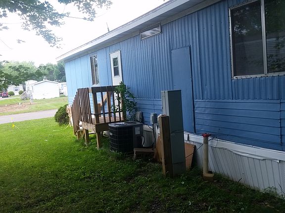 Beautiful double wide mobile home. Located in a quiet nice community that has a basketball court and playground, on a private back lot with a beautiful yard. This home has 3 bedrooms and 2 full baths, central air and the furnace is only 2 years old. There is a great open layout and the whole back part of the mobile home is a master bedroom with a private bath and a walk in closet. It also has a new back porch and a large shed, 8 × 20 feet with electricity to it. It comes with all appliances including stove, refrigerator, washer, dryer, and a portable dishwasher.
