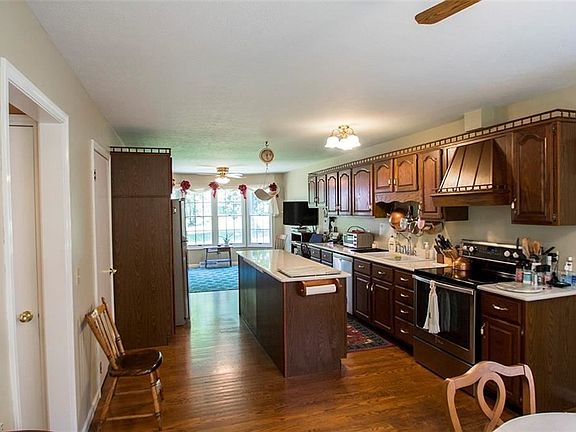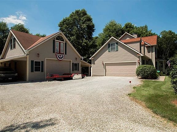 This spacious colonial is nestled on 6 scenic park-like acres with a creek in the back. Inviting wrap-around porch. A large country kitchen offers quartz counter tops, an eating area, plus a dining/gathering area and nice island. Appliances stay. A spacious great room is complimented with a wood-burning fireplace. The deluxe owners' suite is complete with a wood-burning fireplace, a private bath, walk-in closet, and a door to a private deck. Bedroom two and three share bath number two. There is a super nice bonus room with a private staircase. The walk-out basement provides great storage options. Newer retainer walls and concrete sidewalk. Newer furnace. Roof replaced 2012. Car buffs and hobbyists will love the huge 32x32 post and beam outbuilding with an additional 2 car garage. There are 2 awesome covered porches, 220 lines, electric, insulated water line, concrete floor, huge loft/permit for apartment, line to septic, phone lines, plumbed for stove. Quick occupancy available.