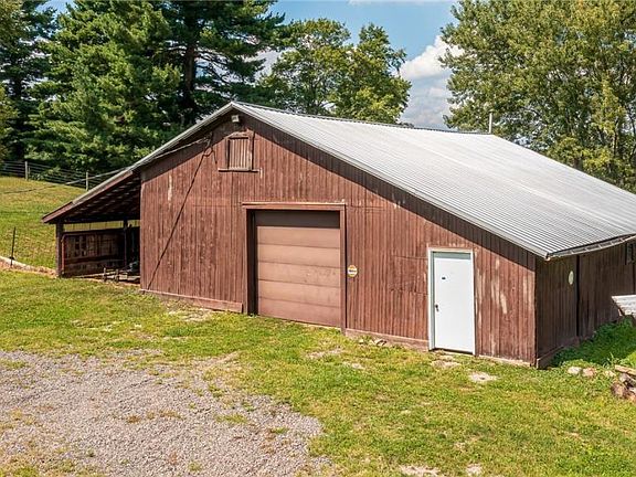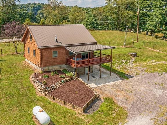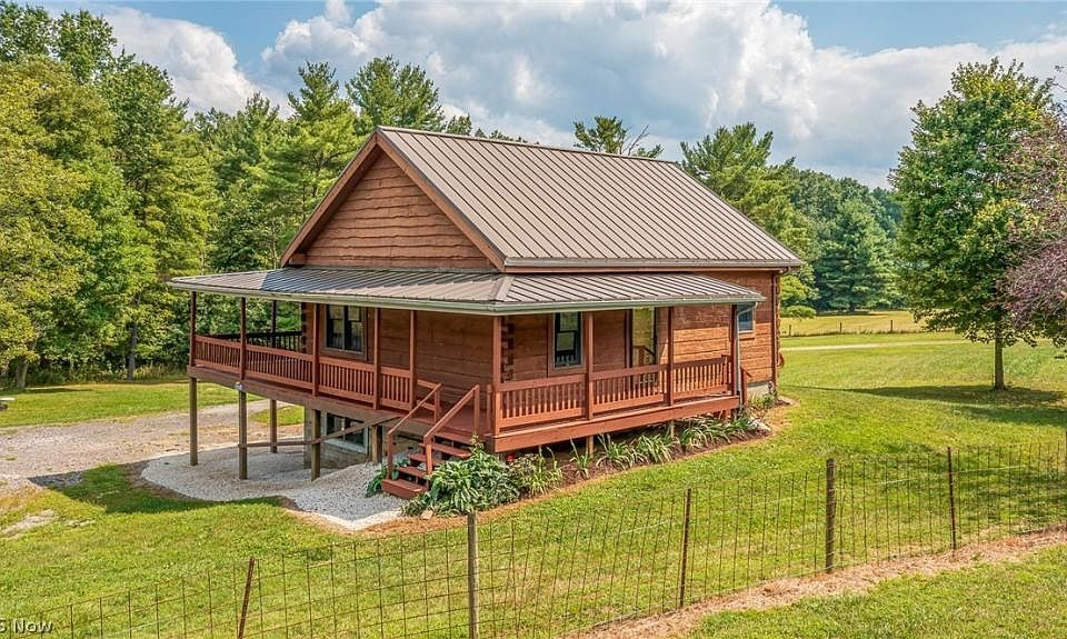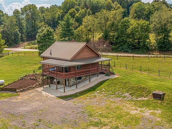 log cabin with wrap around porch on three sides barn with horse stalls 20 acres completely fenced mostly wooded Possible pond or lake site Mineral rights are not included with this sale