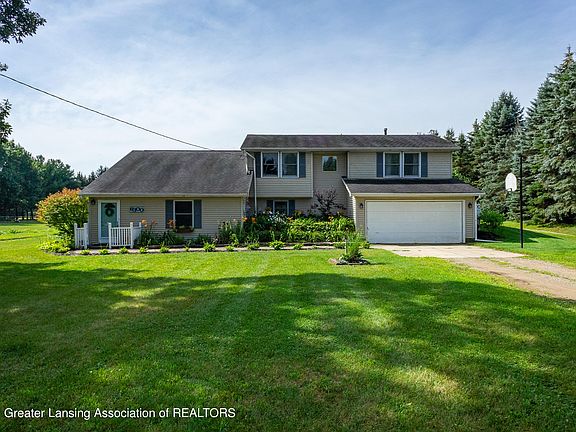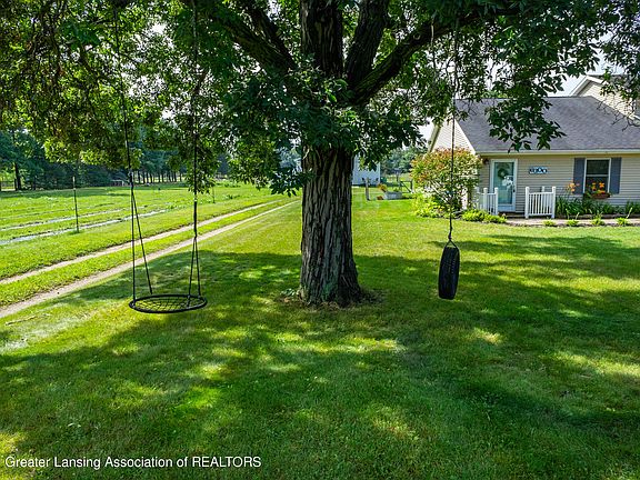 7.78 acres and a pond! This lovely acreage is totally ''usable'', walk, hike, play, farm or fish your own pond! Relax in the charming little bunkhouse by the pond & enjoy the shade & beauty of trees. Land is level meadow for animal grazing or planting! At the head of it all, a 5 bedroom 2 bath home! Comfortably updated and spacious! Plenty of storage, including walk-in kitchen pantry. Color pallet is current & light. Main level laundry. Great room with stone fireplace & adjoining 3 season roomwith wall to wall windows! New, concrete, entertainment patio beyond! Outstanding 64 x 40 Pole barn complete with loft & two 20 x 20 add on porches! Additional 12 x 40 lean to with small animal stalls. 220 separate electric & generator plug in at pole barn workshop. Seller will include Craftsman portable gas generator. Located an EZ distance from I-69 access & surrounding areas. A stone's throw down Clise Rd. from Angle Rd. in Bath, a beautiful place to live!