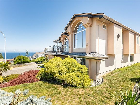 This beautiful executive family home in the coveted area of Nanaimo North boasts breathtaking views of the Georgia Straight and the Winchelsea Islands. Custom-built in 98' with a modern open floor plan, this home can accommodate large and multi-generational families. The grand entry downstairs welcomes you inside, where you'll be met with a beautiful tiled entry and a custom curved staircase. The lower floor has 2bds/1bth, a storage room, plus a large family/media room. Upstairs features 3bds and 2bths, living and dining rooms, plus loads of custom accents and finishings. Wow your guests with the expansive ocean views right from your kitchen windows, and soak up the sun from the sizeable southwest-facing deck. The primary bedroom has a spa-like ensuite, soaker tub and walk-in closet. Hardwood floors have been completely refinished, and a new furnace and hot water tank have just been installed. Overlength parking for boats, RVs, and trailers. Close to schools, Shopping, Rec and more!