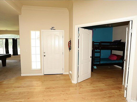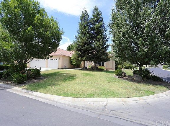 Beautiful single story home with crown molding through entry way and family room. Recessed lighting and ceiling fans through out this home. Kitchen has a large breakfast bar with pull out drawers, beautiful cabinets with lazy susan, corian counter tops, stainless steal appliances and oversized eating area. Kitchen also features lighting above and below cabinets. Home features large living room/dining room combo with gas fire place. Open floor plan where kitchen overlooks family room. Double door entry to master bedroom suite with large soaker tub and separate shower, both with beautiful tile. Laundry room has lots of cabinets. Large back yard fully landscaped with two concrete patio areas plus an orange tree, lemon tree and grapes. Plenty of natural light and storage throughout plus a three car garage on this large corner lot located close to the community pool and front gate. Make this home your own!
