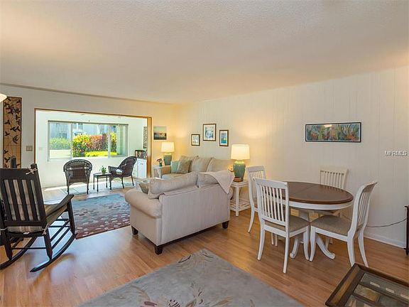 Move right in and start enjoying this light 2 bedroom 2 bath first floor condo. New hurricane windows, updated kitchen with granite and low maintenance Pergo flooring throughout living areas. Enclosed lanai with built in low storage space for multiple uses. Custom window coverings add to the nighttime privacy. Condo was newly furnished in 2011. Best thing is this unit has a stackable washer and dryer inside. A community Laundry room is close by for larger items along with covered parking and private individual storage room for beach supplies. Walk out your back lanai and enjoy the breeze and open views of the Bay or go for a swim in the newly refurbished heated pool. If that doesn''t work, get out your putter and practice on the green or head out for a set of tennis or shuffleboard. When all is done, relax with your neighbors overlooking the Bay on the new patio. Recreational building with patio and grills for meals. Low fees with all included except your electric and internet! Furnishings all new in 2011.