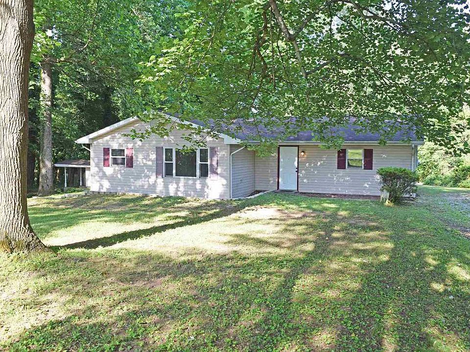 HURRY A West Side Property Like you Rarely FIND! One Owner, Over 2 Acres, 952 square foot 28 x 34 Out building/workshop and a 1300 square foot, 3 Bedroom home all tucked away at the end of a private dead end road! Located in Posey County just a half a mile west of the Vanderburgh line, property has an Evansville address. With some cosmetic updating this will be an Awesome place to call Home! Includes the Kitchen appliances and the washer and dryer. All the windows have built-in blinds, the woodwork has the original stain. The house and the building have inviting covered porches to enjoy the Country Life and watch all the local Wildlife! The cellar entrance is from the outside. The sellers are providing a One Year Home Warranty. Immediate Possession.