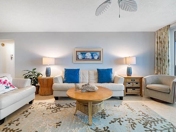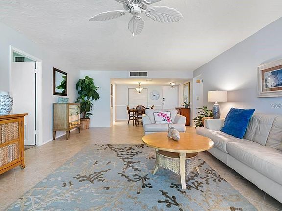 Crystal Sands offers the best beach views on Siesta Key. Every room provides unobstructed enchanting views of sunsets and the glittering lights of downtown Sarasota in the evenings. The 2 bedroom 2 bathroom condo features a split floor plan with updated windows and sliders throughout, walk in closets in both bedrooms and a large laundry room with washer and dryer. Crystal Sands provides the perfect lifestyle whether you plan to live and use the condominium full time or purchase as an investment. The community has two heated pools and complimentary beach chaises and chairs to enjoy.
