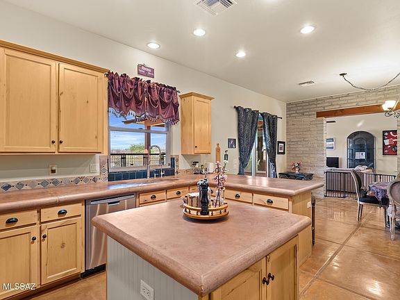 Discover the essence of SW living in this one-of-a-kind custom retreat perfectly nestled on over 3 acres in the breathtaking Tucson Mountain Reserve. Surrounded by pristine desert & unobstructed mtn views, this exceptional home offers the ideal balance of privacy, tranquility & timeless design. Step inside to a welcoming great room where exposed wood beams, striking adobe accent wall & cozy fireplace create rustic elegance & warmth. Open layout featuring scored concrete floors throughout—no carpet anywhere! Thoughtfully designed kitchen is both stylish & functional, offering abundant cabinetry, concrete countertops, a generous island & breakfast bar-ideal for gatherings or everyday living. Spacious primary suite serves as a true sanctuary w/its own fireplace, direct patio access,