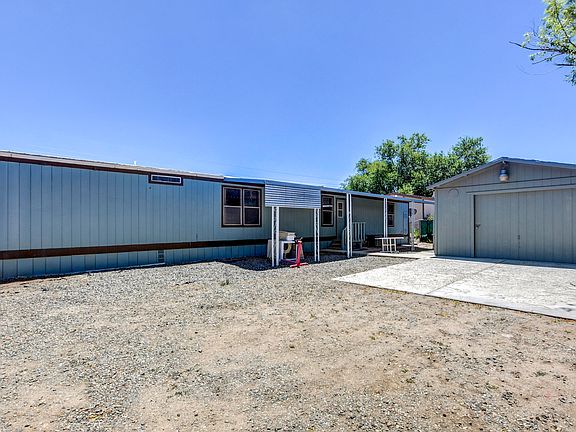 Recently updated affixed single wide - very clean and MOVE-IN READY! Two large bedrooms with 2 full baths. Open living room/kitchen and large yard. New flooring and paint. New roof on garage. Kitchen island conveys.