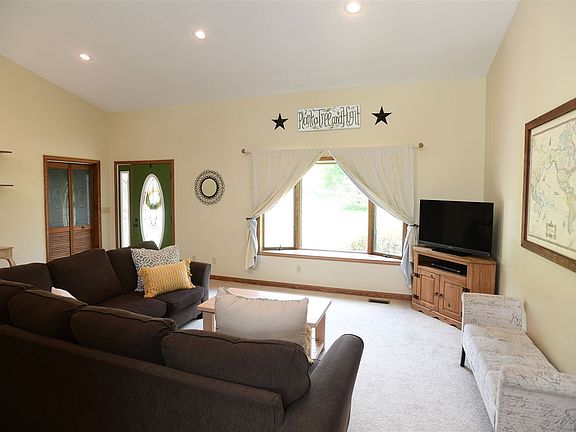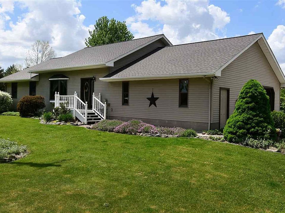 A Wildlife Lovers Paradise! Simply magnificent 3 bed/2 bath home set back on 5 wonderful acres featuring a pond & walking trail. Master suite with full bath & slider to the deck, 2 more beds & full bath all on the first floor. Cathedral ceiling in the spacious living room, large kitchen with newer appliance package & eat in space overlooking the lovely backyard. First floor laundry. Finished walkout basement & a gas fireplace, a large family room & bonus room which could be a 4th bedroom. So many updates including all new roofing in 2019 on home & both garages, new skylights, newer furnace, washer/dryer & water softener. Attached 2.5 car garage, additional 24 x 24 two story detached garage with walkout offers space for your boat/RV & separate storage for lawn & garden equip. Full concrete drive with turn-around. Gorgeous landscaping w/ butterfly bushes, decorative trees & a pond. Set on a quiet road within walking distance to the Falling Waters Trail & Kalamazoo River for adventurers!