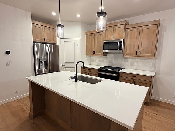 Upscale townhome in Southwest Boise. Enjoy high-end finishes such as quartz countertops, stainless steel appliances, gas stove, engineered hardwoods, and luxury carpet. The primary bedroom has a tray ceiling with ceiling fan. Primary bathroom has tiled walked in shower. dual vanity, sinks, and walk-in closet. Backyard is maintenance free with year-round, artificial turf. Close to great amenities and easy to commute to the airport.
