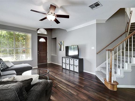 You'll fall in love with this stylishly updated 3 bedroom 3 bath spacious home nestled in Legend Oaks. Touches of comfort and beauty throughout ~ wood floors, soft gray walls, serenely updated kitchen with quartz counters, bright white cabinets accented by sophisticated backsplash and recessed lighting. Natural light gives this home a light and airy feel. Gorgeous mature oak trees create a lovely outdoor space to enjoy. Friendly Legend Oaks neighborhood with lots of social activities to enjoy!