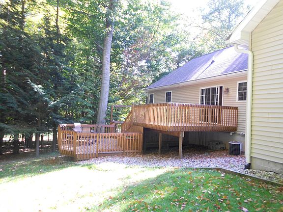 LOVELY HOME IN HAMLIN TOWNSHIP! Move in ready 4 bedroom home with main floor master bedroom with private bath, gas fireplace in living room, central air and open kitchen with hickory floors and breakfast bar. The walkout basement has a large family room with walkout to patio, utility room and plenty of storage. Exterior amenities include landscaping, underground sprinklers, 3 tier deck with hot tub and large yard area. The attached 3 car garage is an added bonus. Just a short distance to beautiful Hamlin Lake. Must see!