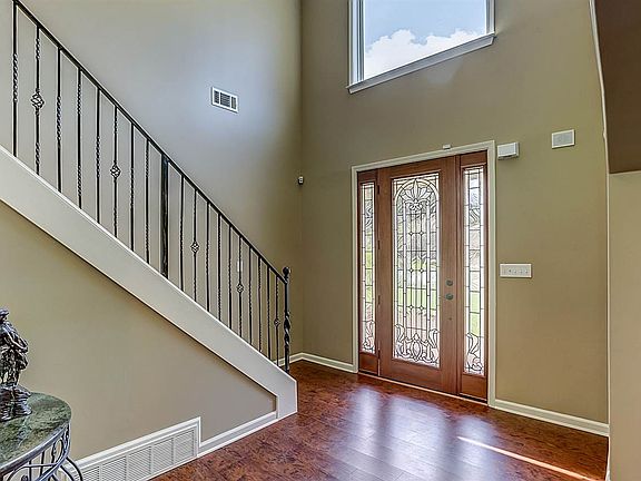 Grand Home! This stunning home has a two-story foyer with 9 foot entry door and soaring ceilings. Home has arched doorways, wrought iron staircase, lots of windows, double ovens, and stainless appliances. Energy efficient upgrades include new windows, extra insulation, and tankless water heater. A large front porch has been added to give a welcoming entrance and allow for plenty of space to relax. Upstairs furnace and A/C replaced last year. Washer and dryer stay. More photos coming soon.